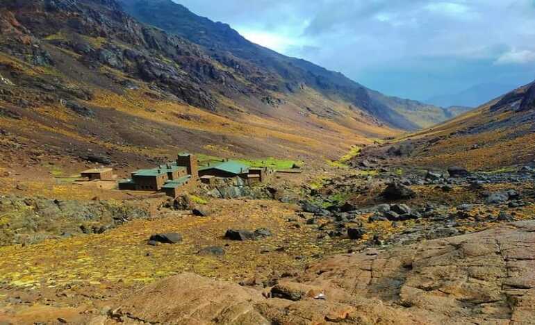 Transfer from Marrakech to Imlil, A one hour Drive Start your trek from Imlil villages, a steady climb takes you to the Shrine Sidi Chamharouch a place for all the pilgrims from across regions of Morocco, to heal the sick bewitched by the evil spirit, a pose tea will come Bienne then you will continue your trip south to the Toubkal Refuge, lunch, installation of luggage, overnight, 5 hours walking.